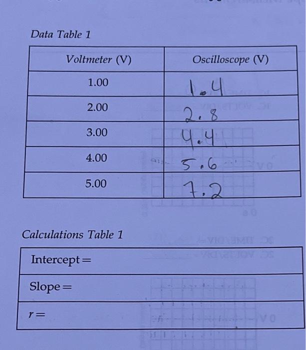 Solved Data Table 1 Voltmeter (V) Oscilloscope (V) 1.00 1.4